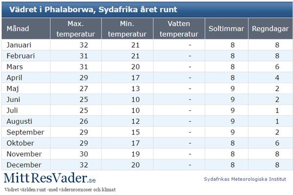 Klimatet i februari - Minimitemperatur 20°C – Maxtemperatur 36°C