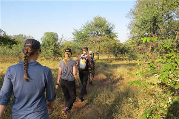 Om du skulle känna dig osäker (till exempel om du möter “större“ djur som lejon, elefant eller flodhäst) backa långsamt tillbaka samma väg som du kom ifrån, och ställ dig nära en byggnad/rondavel tills djuret går sin väg.